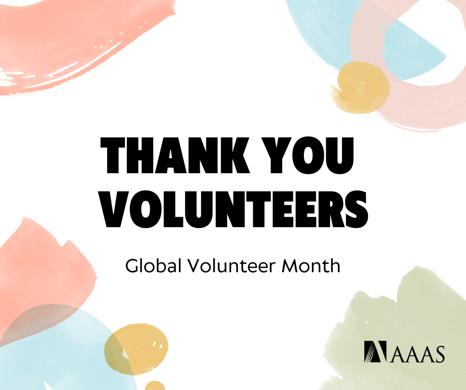 April is Global Volunteer Month! To close out the month, we wanted to express our gratitude to all AAAS Volunteers. Whether you are participating in cross-disciplinary conversations through AAAS Sections or engaging your community through the Local Science Engagement Network, thank you for making a difference.