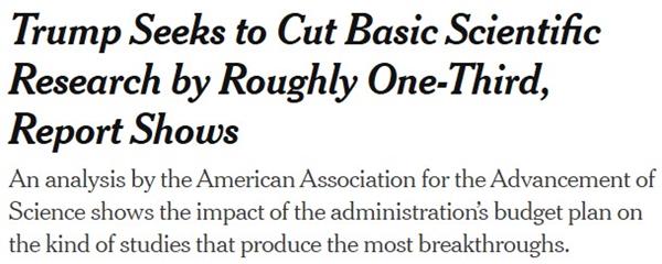 NYT story: Trump Seeks to Cut Basic Scientific Research by Roughly One-Third, Report Shows