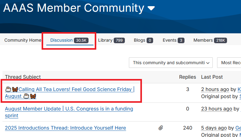 A: 1. From the Community page, select the discussion tab, then the discussion thread.