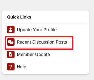 A: You can access the latest discussion posts from the Quick Links menu on the home page by selecting "Recent Discussion Posts".