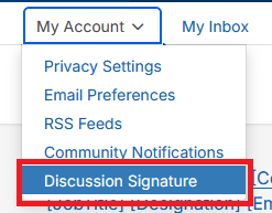 A: From your AAAS Community Profile, select the "My Account" tab, then "Discussion Signature".