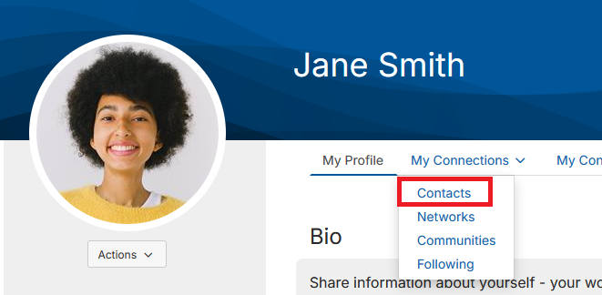 5. When the person accepts your request, they’ll show in Profile -> My Connections -> Contacts.