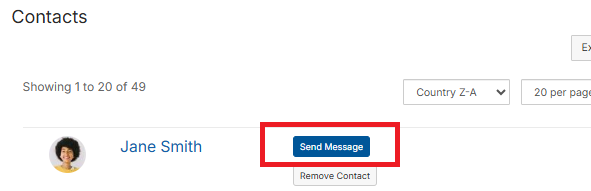 A: On your Profile under My Connections > Contacts click the "Send Message" button next to the desired contact.